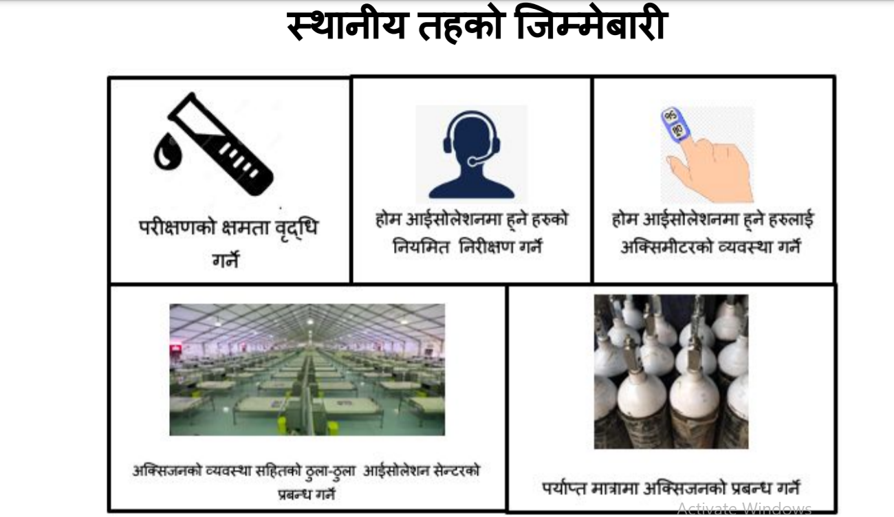 स्थानिय तहले घरमा आइसोलेसनमा बसिरहेकाहरुलाई पल्स अक्सीमिटर उपलब्ध गराउने र आवश्यक स्वास्थ्य परामर्शको पनि व्यवस्था गर्नुपर्छ ।