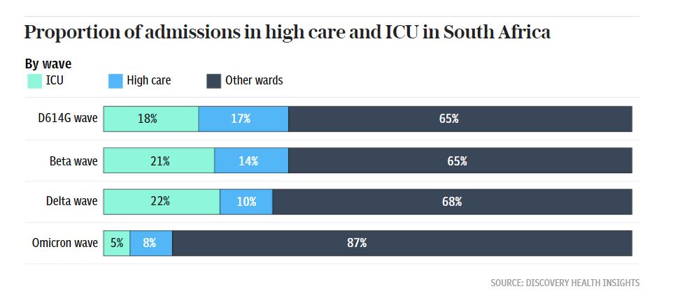 उदाहरणका लागि दक्षिण अफ्रिकामा बढी खतरनाक भनिएको डेल्टा भेरियन्टको छालको समयमा कोरोनाबाट संक्रमित भएका २२ प्रतिशतलाई आईसियु वेड र १० प्रतिशतलाई उच्च खालको सेवा दिएर राख्नु परेको थियो ।